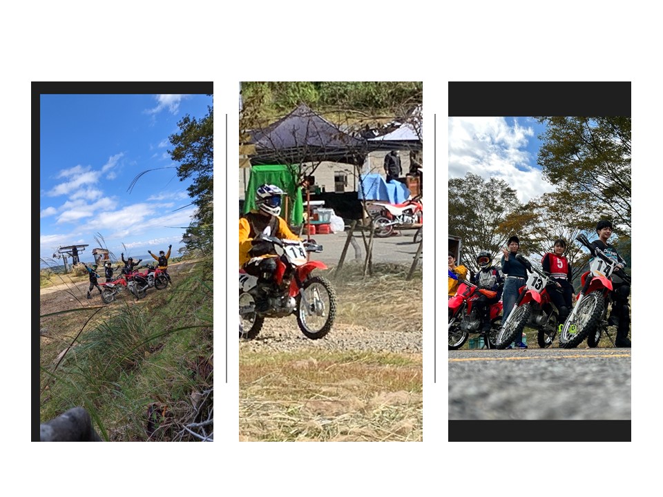 バイク同好会のオフロード部の学生5名が、10月18日(日)に滋賀県の朽木スキー場にて行われたHonda Dream主催の「朽木オフロードミーティング」に参加してきました。現地についてまず最初の感想は、スキー場が会場ということもあり、コースの斜度は想像を超えたものでした。