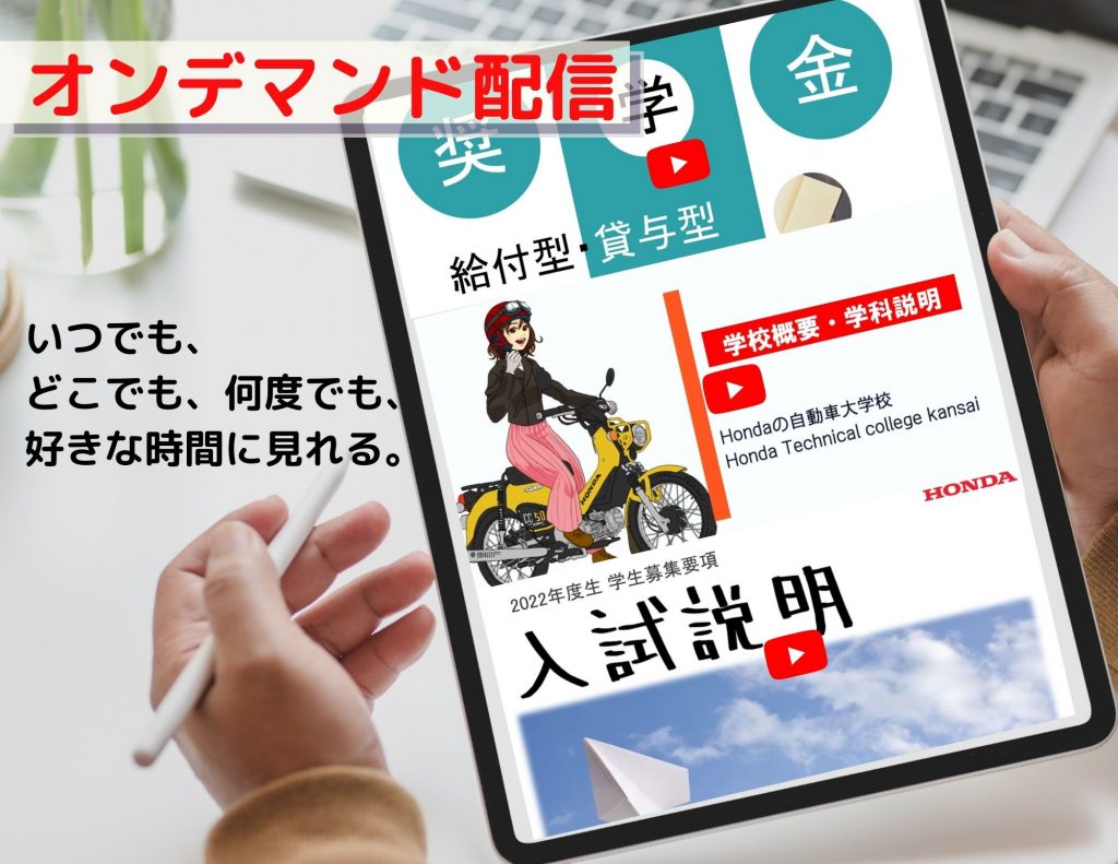 いつでも、どこでも、何度でも、自分の好きな時間にホンダテクニカルカレッジ関西の説明動画が見れる【オンデマンド配信】を開始しました。