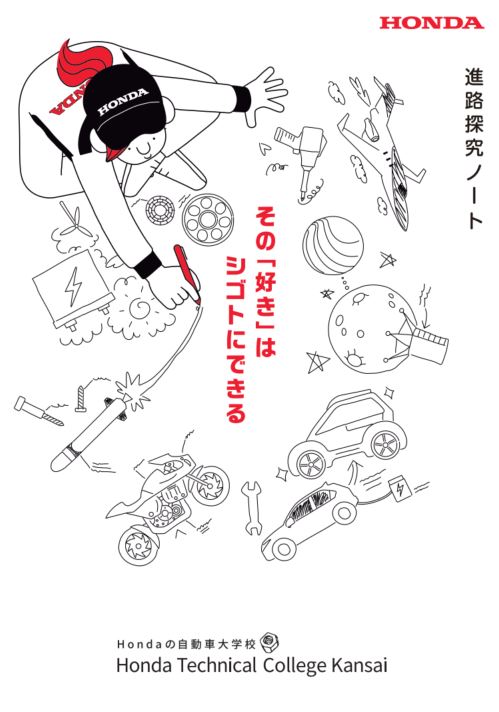 ホンダ テクニカル カレッジ 関西は、高校生が将来就きたい職業を考えるキッカケとして、進路探究ができるオリジナルのキャンパスノート『進路探究ノート』を大阪府・京都府・兵庫県の高校1年生15,000人※に、2023年5月8日より無料配布します。※配布先は事前に連絡を取り、配布許可が取れた一部高等学校となります。