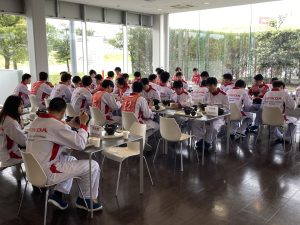 入学したばかりの1年生および自動車整備留学生科2年生が、4月22日(月)~23日(火)の二日間、三重県の鈴鹿市へ校外オリエンテーションに出かけてきました。4月22日の朝8時にバスでホンダ学園を出発し鈴鹿サーキット移動後、2グループに分かれ、午後からはレーシングコースと鈴鹿製作所の見学および交通教育センターでのモビリティ体験と危険予知トレーニングを実施しました。また、初日の夜は鈴鹿サーキットホテルに宿泊し、仲間とともに夕食・歓談を楽しみました。