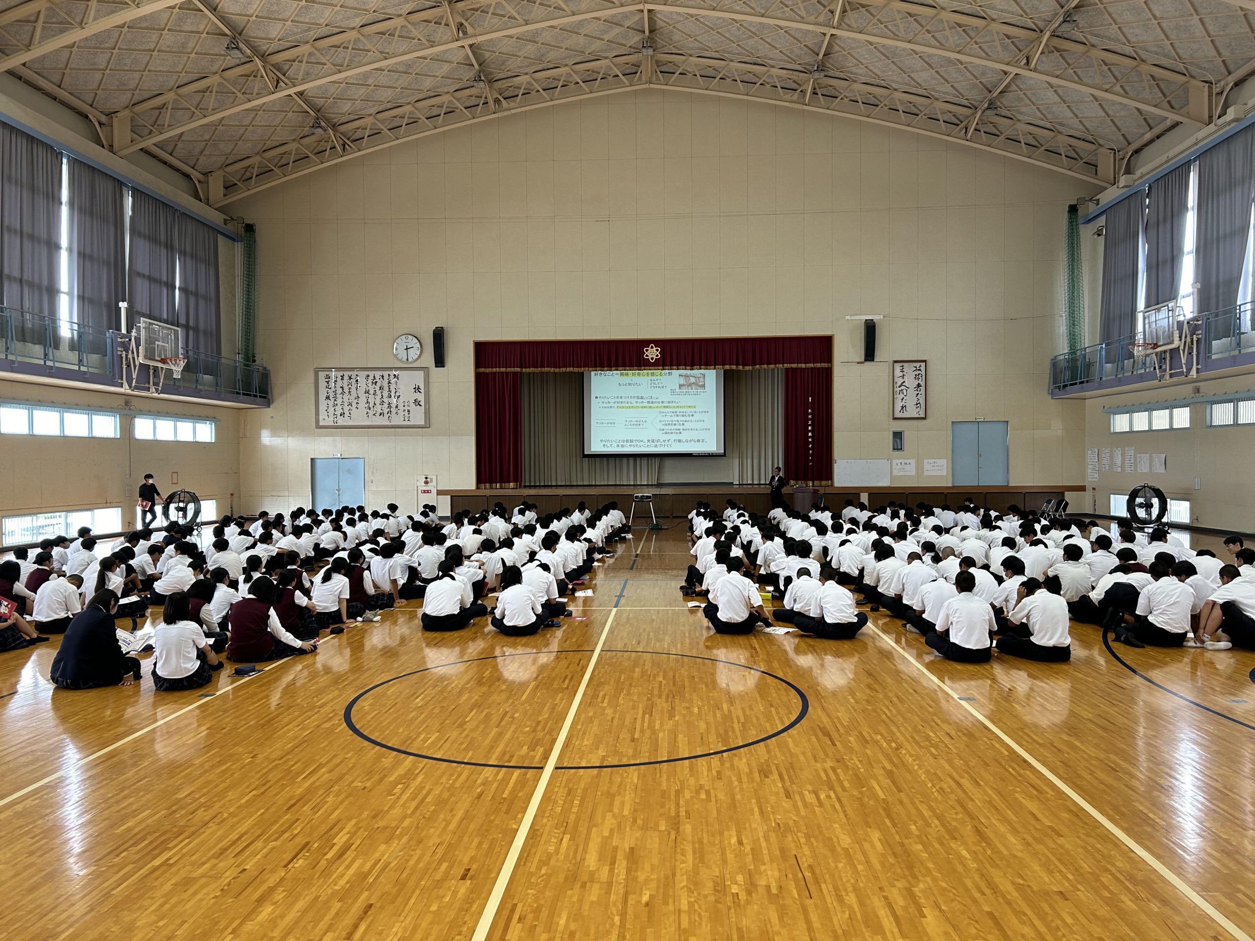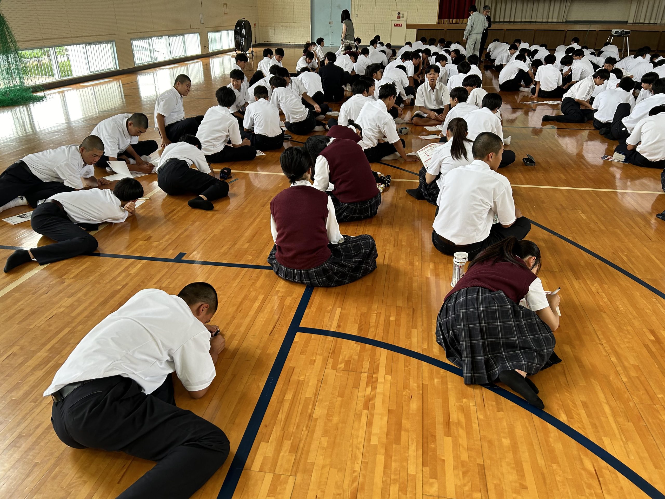今回は、授業時間が90分とっていただけたことで、授業の最後に各自でワークシートに取り組む時間もでき、今後の進路について考え・悩む時間が取れました。また、Q&Aの時間も設けれたことで、生徒とたくさん情報交換できたことも非常に有益でした。また、勇気を持って質問・宣言してくれた生徒の皆様もありがとうございました。