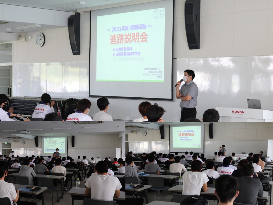 10月5日(月)の4限目に、再来年の3月に卒業する学生を対象(自動車整備科・自動車整備留学生科)とした第2回の進路説明会を行いました。