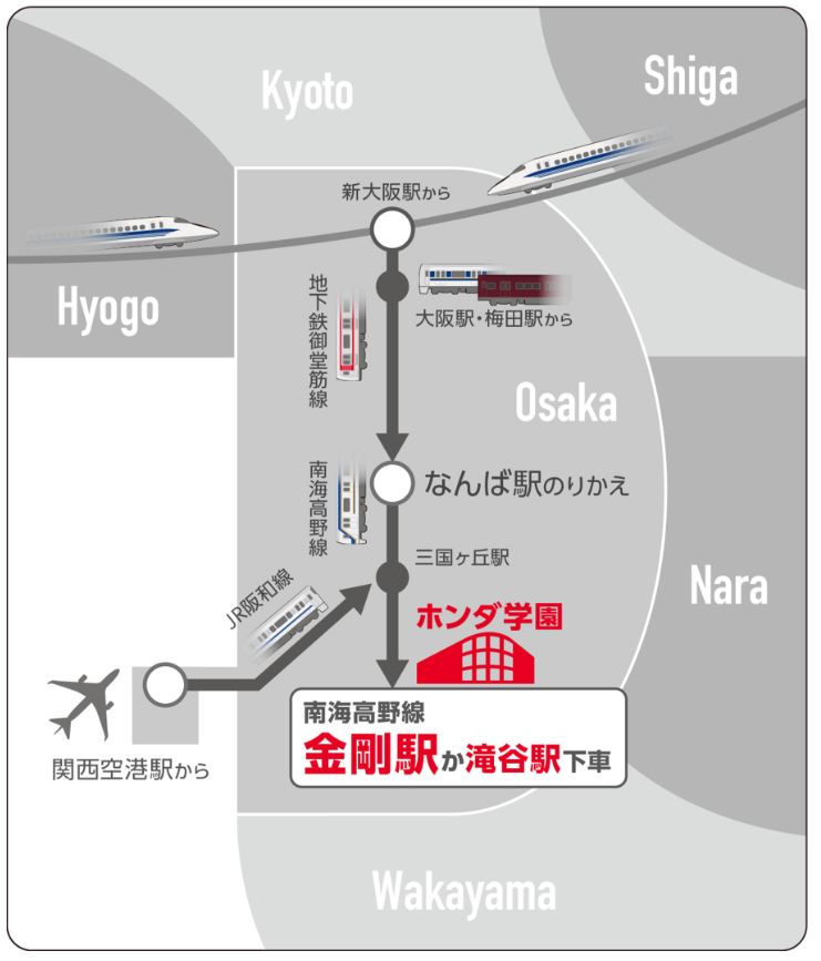 ■本校へのアクセス(最寄り駅:南海高野線 金剛駅)※金剛駅は急行停車駅です。