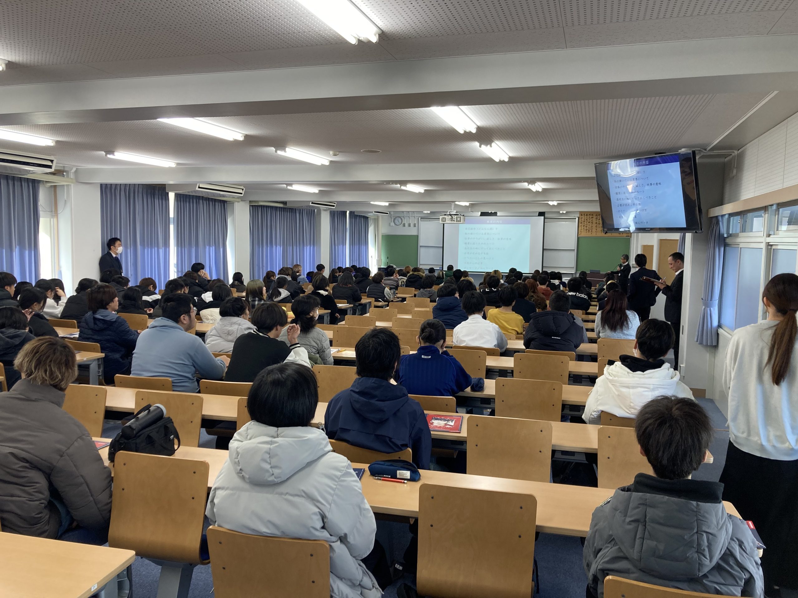 1月9日(木)に兵庫県の阪神昆陽高校1年生 約190名を対象に「Honda社員が語る仕事をキーワードにした進路探求授業」を2回講演で実施させていただきました。生徒の皆様は最初から最後まで熱心にノートへメモを取るなど真剣に受講してくれました。2年連続でお伺いしましたが、毎回、生徒は気持ちの良い挨拶をみなさんがしてくれます。また、授業終了後にも多くの生徒が質問に来てくれ、とても充実した出前授業でした。