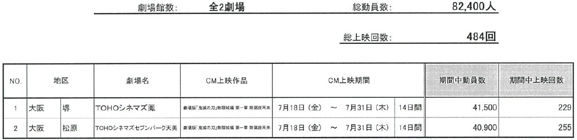 パラパラ動画放映期間の劇場動員数は82,400人(TOHOシネマ鳳・セブンパーク天美 2館の実績)