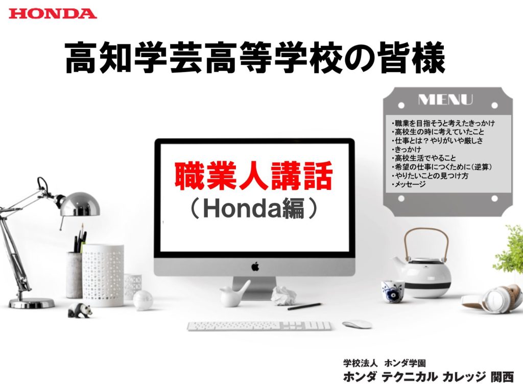 11月30日(火)に高知県の高知学芸高等学校1年生の皆様にONLINEで「進路探究授業」を実施させて頂きました。高校卒業後の進学先は「夢を叶えるためのラストステージ」です。未来の自身のなりたい姿を描き、未来からの逆算=バックキャスト思考でぜひ進学を考えてみて下さい。勉強に部活に学校行事・ボランティア、皆さんを成長させるものは沢山あります。ぜひ、積極的に取り組んでください。