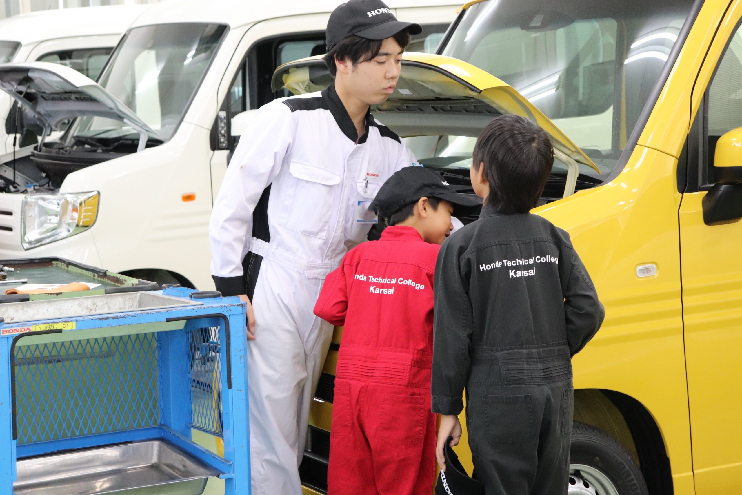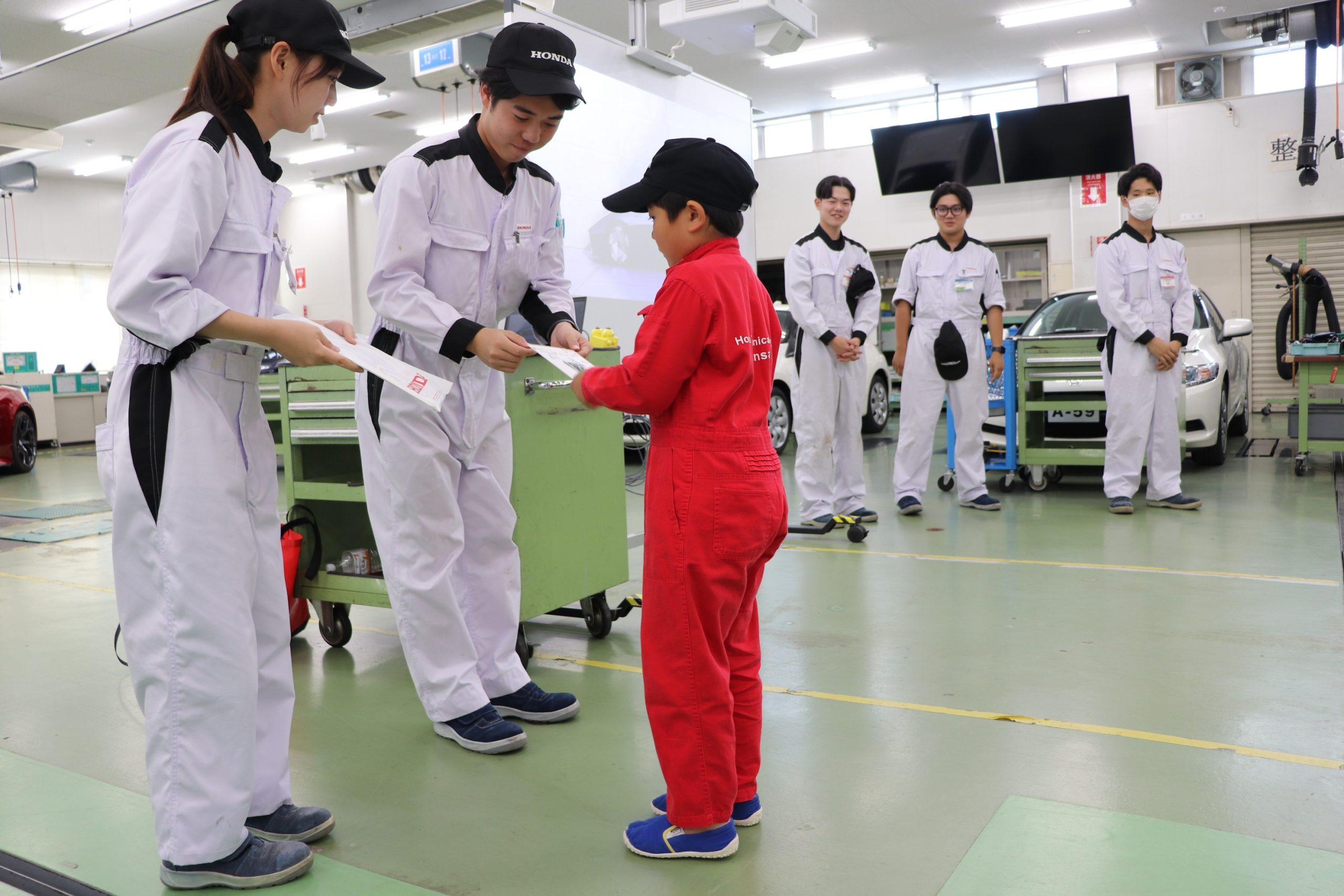 7月21日(月祝)に学園生が先生になって、小学生に交通安全の啓蒙・トートバック制作・整備体験を実施する「KIDSメカニック&ものづくり教室」を開催しました。夏休みの開催とあって、事前予約は数分で埋まる状況(*’▽’)
