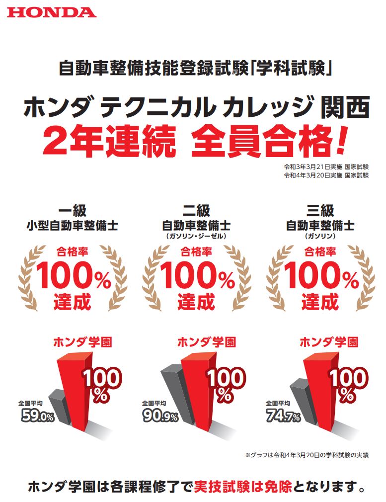 ■R4年3月20日(日)自動車整備技能登録試験のホンダテクニカルカレッジ関西受講者と合格者