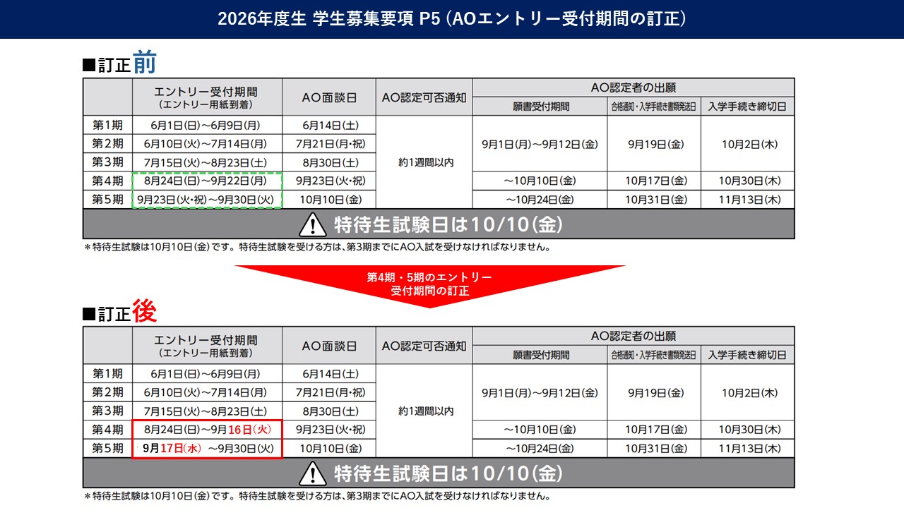 ■AOエントリー受付期間の訂正(初期の募集要項からの修正点:第4・5期のみ)※赤枠部分の箇所