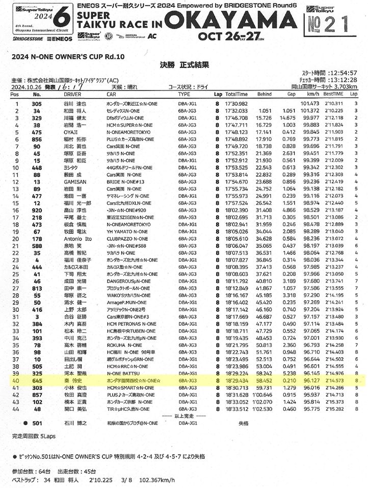 Round.10 岡山国際サーキット|レースレポート|N-ONE OWNER’S CUP
