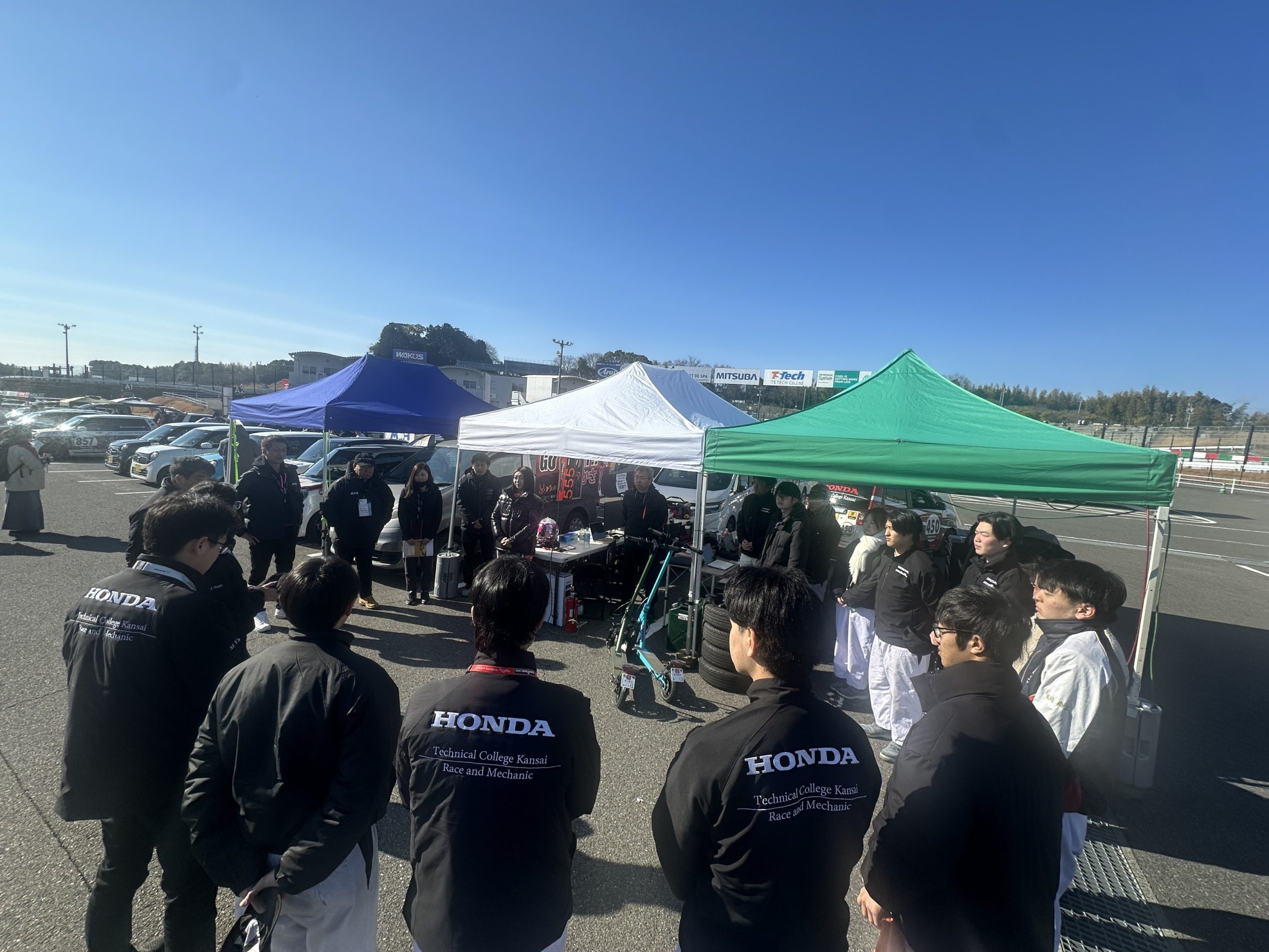 今回の遠征メンバーは、3月23日(日)に自動車整備士の国家資格試験を控えた学園生を除く1・3年生で構成し、レース車両は1台で臨みました。緊張しながらもレースの雰囲気にどこかワクワクした様子が見られました。