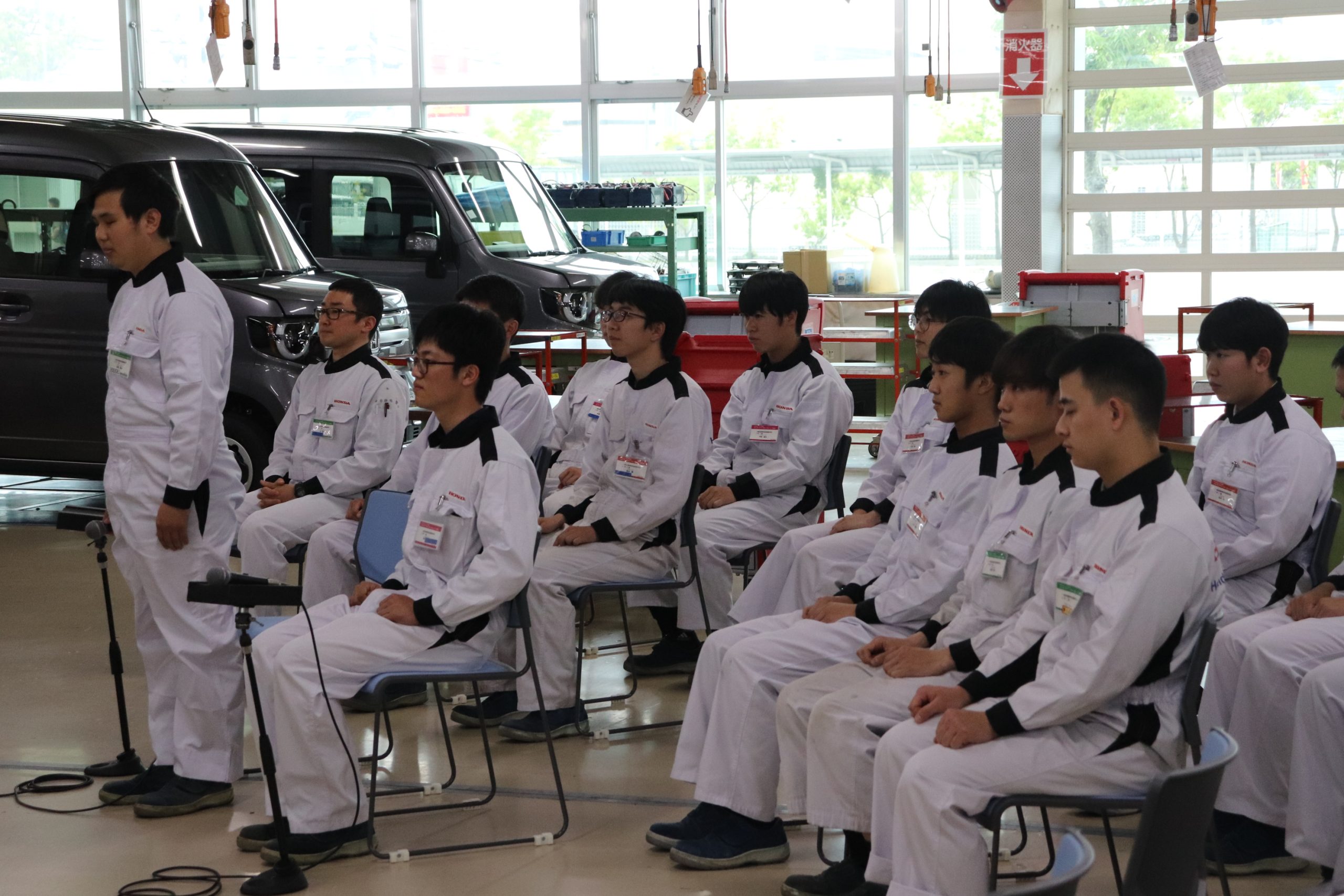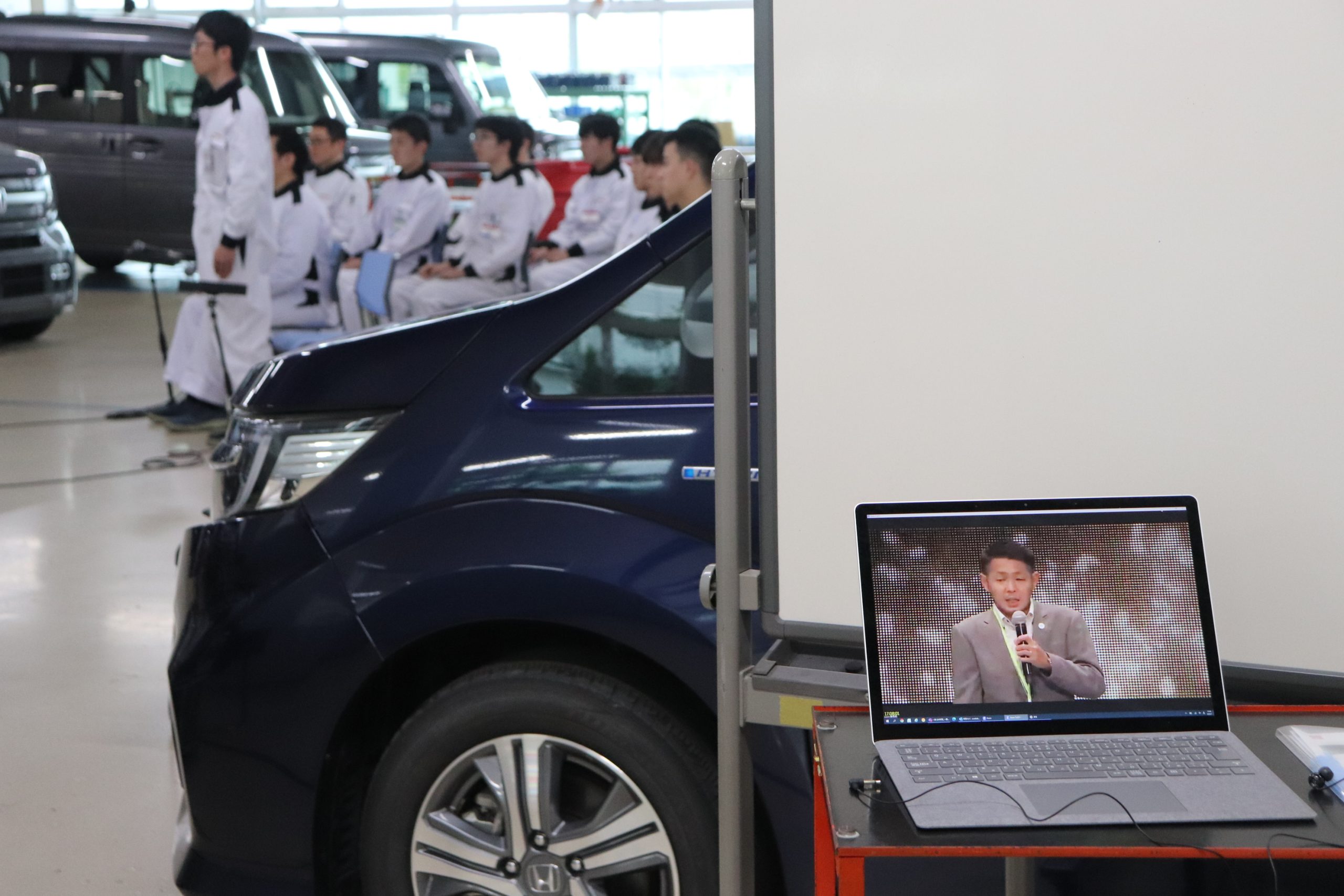本田技研工業(株)が昨年より実施している、「Honda Cars Award(Honda Carsの法人・拠点・営業スタッフ・サービススタッフを表彰する式典)」がパシフィコ横浜で6月1日に開催されました。今回は、表彰式でステージに登壇したサービススタッフの方2名へホンダテクニカルカレッジ関西の学園生がLIVE中継で質疑応答する時間を設けて頂き、一級自動車整備士コースの学園生が質問をさせていただきました。質疑応答では、学園生からの質問に丁寧にご回答いただき、また、適切なアドバイスまでいただき誠にありがとうございました。学園生にとって、とても貴重な体験となりました。(^_-)-☆。