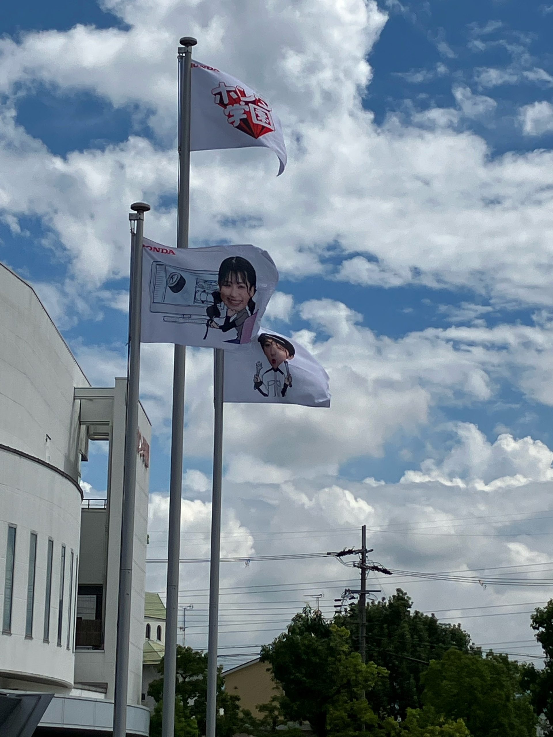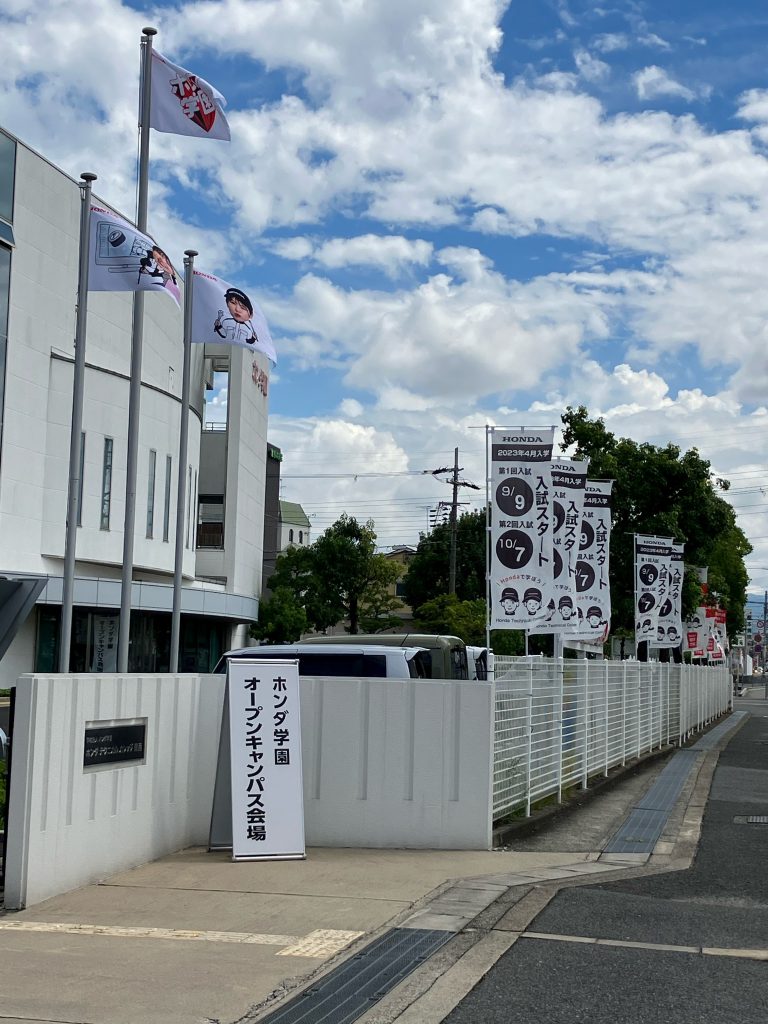 【New】正門前3連ポール❝フラッグ❞の入替え 2022.09.12 9月10日(土)に古くなっていた正門前の3連ポールのフラッグデザインを新調し、取り換えました。 デザインは、大阪府内のシティバスへのラッピングや本校の送迎バスにも使用している、アタラシイ、ホンダ学園のロゴとイラストを使用しました。ホンダテクニカルカレッジ関西の前をご通行の際には、是非、新調したアタラシイ、フラッグを見てみて下さい。 タノシイは、アタラシイ。
