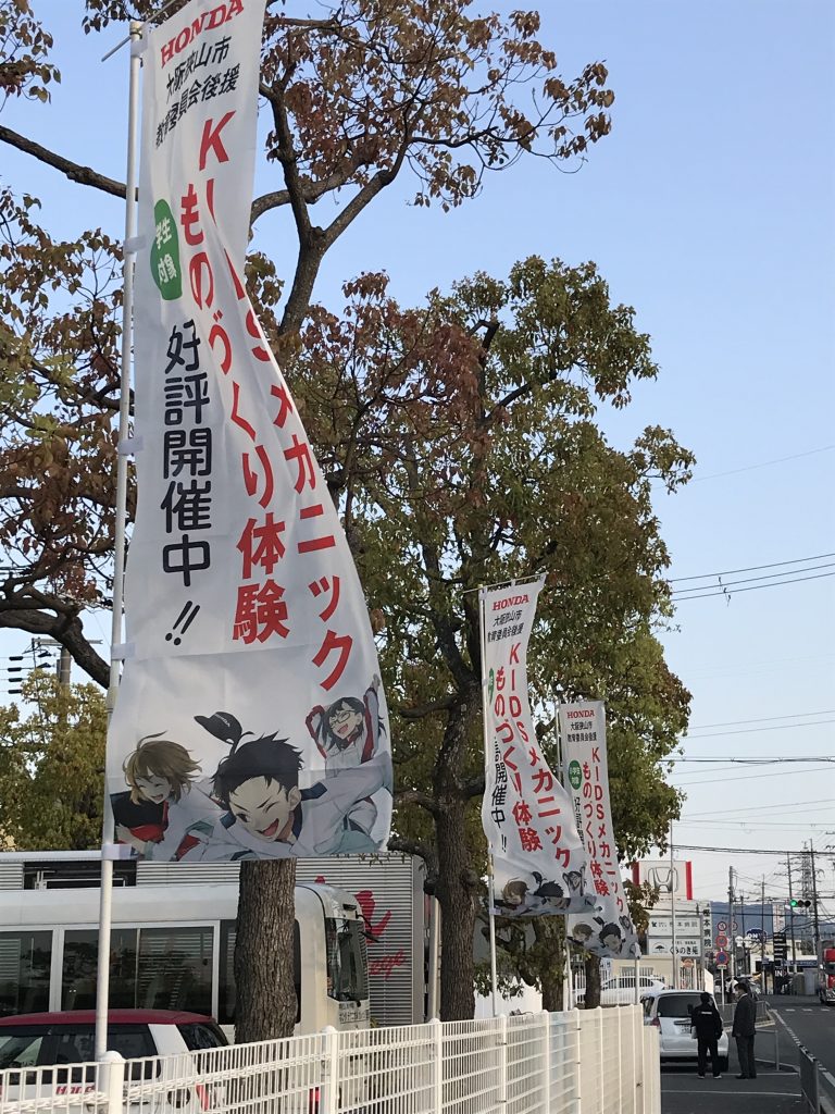 【New】KIDSメカニック&ものづくり教室の”のぼり”の設置 2022.04.11 昨年の4月に開校した『KIDSメカニック&ものづくり教室』の”のぼり”を、新たに学園の道路側に設置しました。特に宣伝等は実施していないのですが、いつもすぐに参加者が一杯になるイベントです。ただ、まだまだ地域の方への認知は不十分。大阪狭山市教育委員会の後援、更に文部科学省の土曜学習応援団に認定されている『KIDSメカニック&ものづくり教室』。参加できる対象者は小学生となります。地域にお住いの小学生の皆様、保護者の皆様、ご興味がありましたら、ぜひ、ご参加ください。 ■KIDSメカニック&ものづくり教室の詳細は下図をクリック