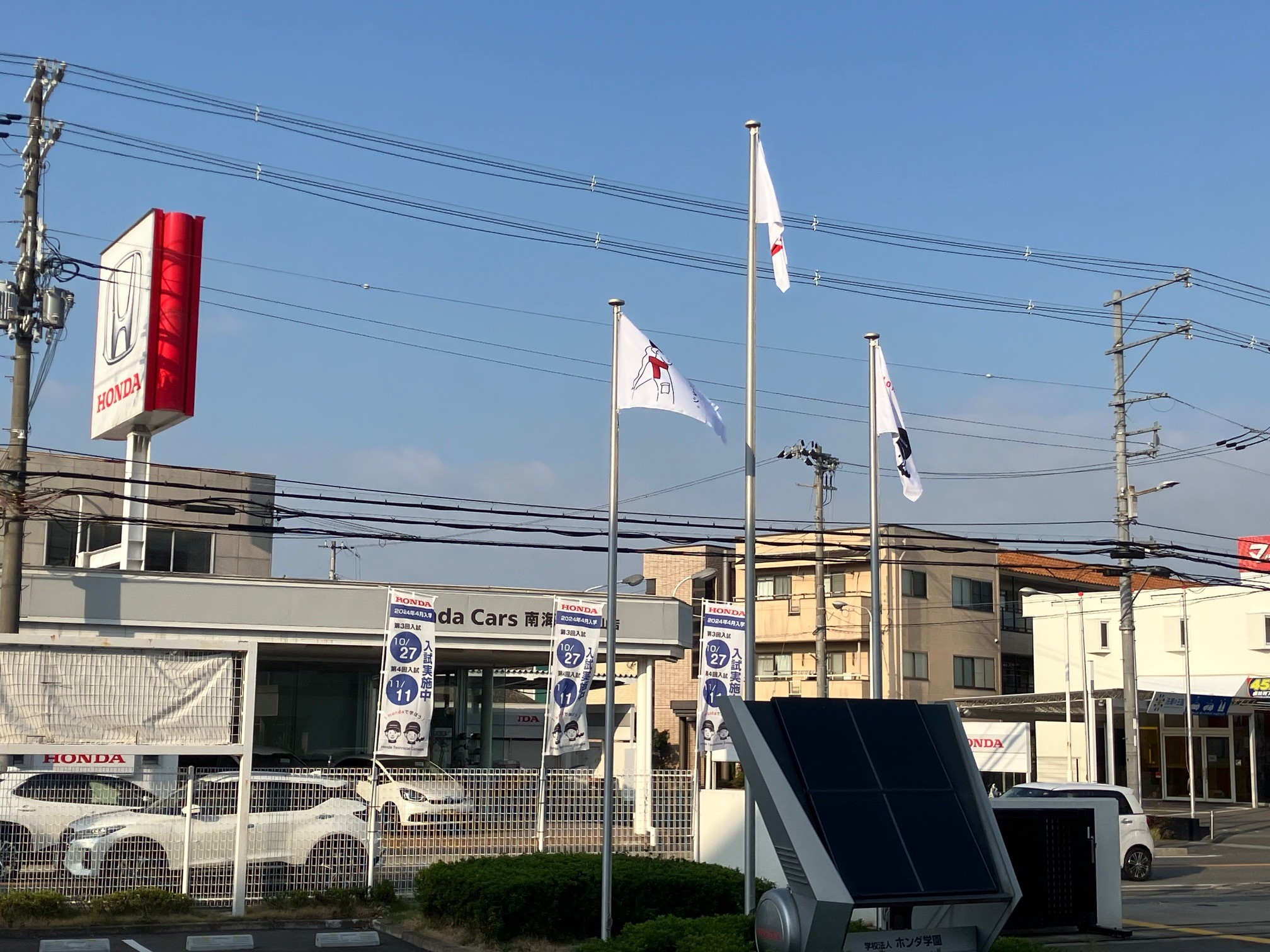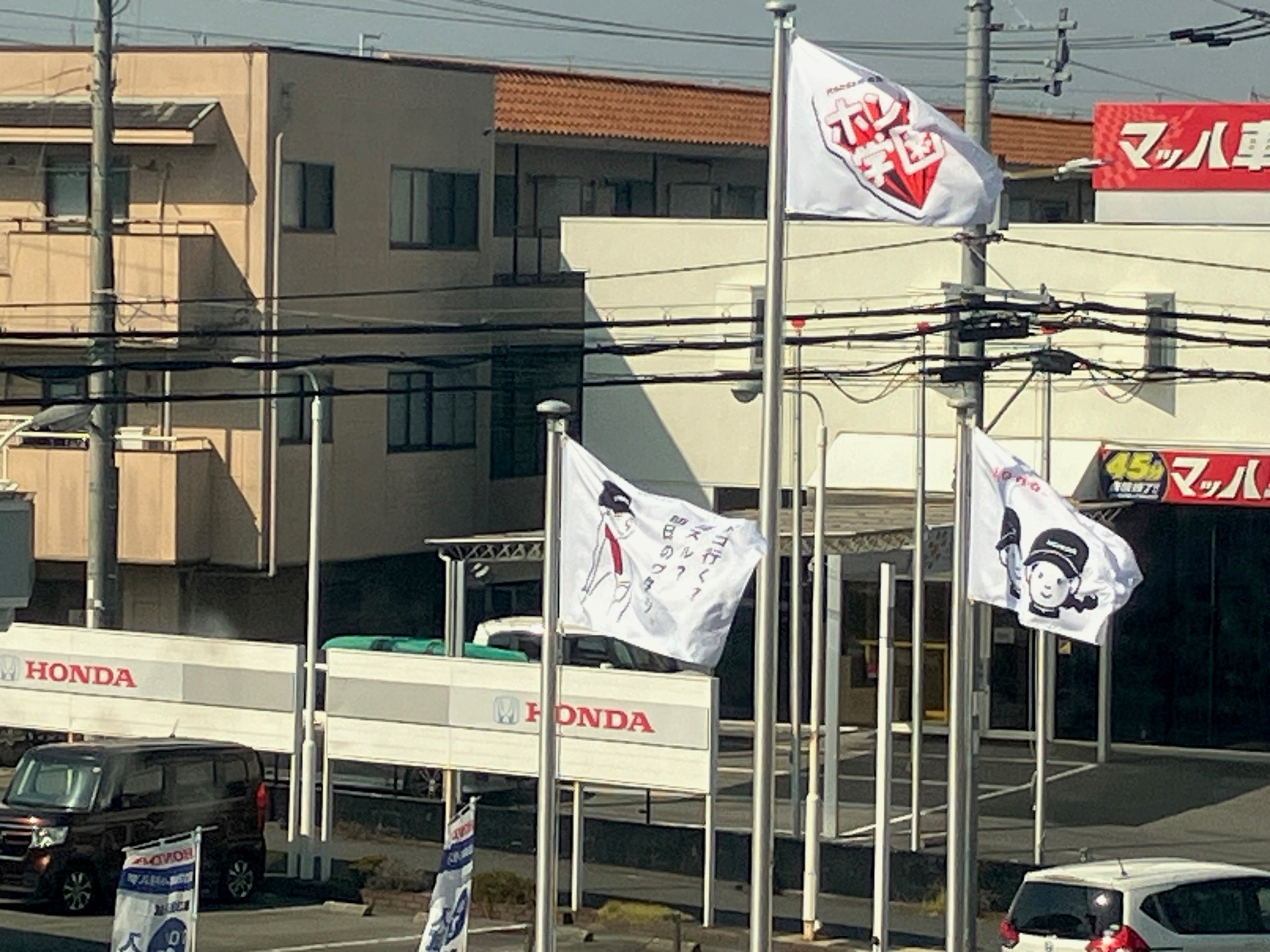 【NEW!】正門前のポールフラッグ 2023.11.02 正門前の3連ポールのフラッグが痛んでいたので、新しいデザインのフラッグに付け替えました。フラッグの白色が綺麗に発色し、晴天の空にすごく似合ってます。(#^^#) また、フラッグデザインはいつもお世話になっている制作会社様(那須印刷、JSコーポレーション、boom)にご協力をいただきました。