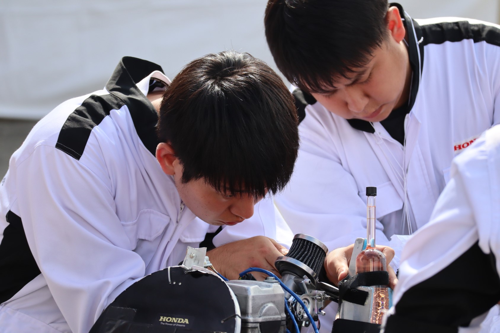 昨年までとは異なるエンジンと車体での出場を目指したことから、学内での準備に時間がかかり、大会前日の深夜まで宿泊施設の駐車場でも作業を行うという状況でしたが、なんとかツインリンクもてぎでのテスト走行に間に合わせることが出来ました。