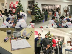 12月10日(火)の放課後、ガーデニング同好会のメンバーと有志が、1号館1階の展示スペースに恒例の「クリスマスツリー」の設置とショールームの飾りつけを実施してくれました。