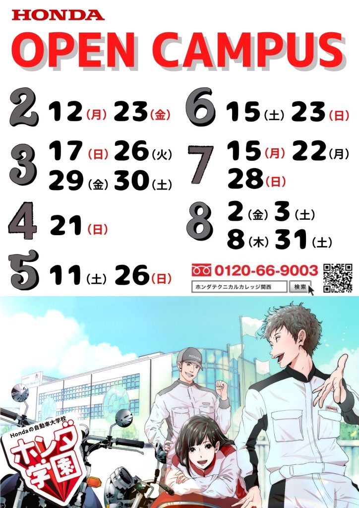 高校3年生の皆様、既に高校を卒業している方(留学生除く)、ホンダ学園のオープンキャンパスにいち早く参加し、AO入試のエントリー資格を獲得しよう!