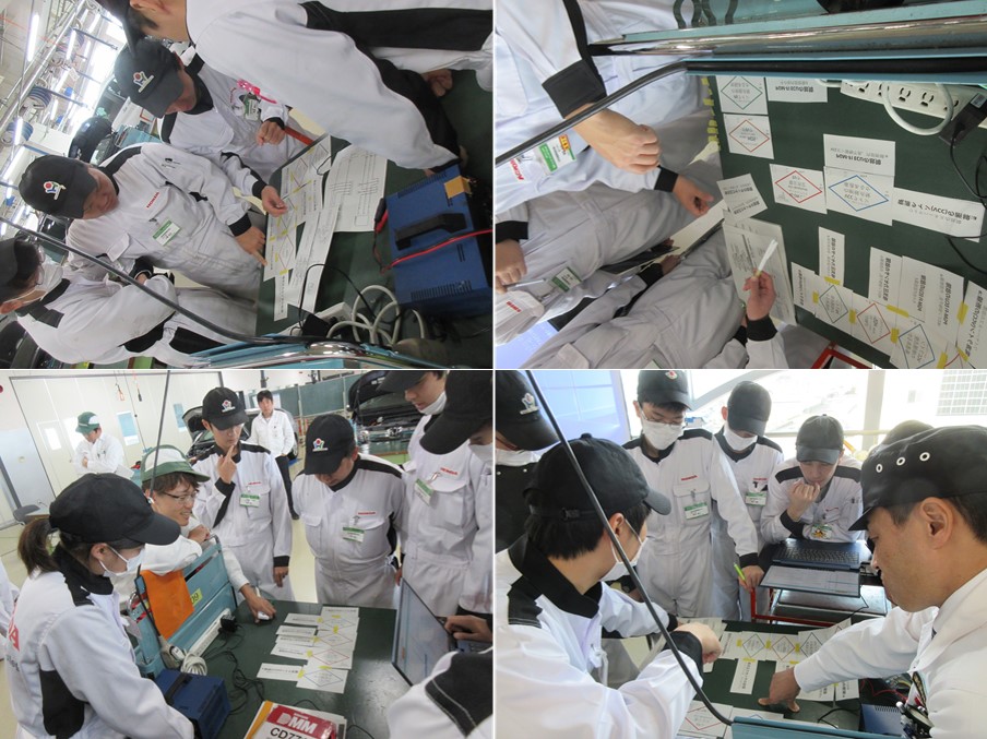 最初は実際に故障を発生させ、それがどこで起きているかの診断をチームで実施。診断チャートをどう並べ替えれば効率的に、かつ網羅的に故障箇所にたどり着くのか、頭を悩ませました。そして実際に作ったチャートで実車を使って、並べたチャートで故障原因にたどり着けるのかを検証しました。