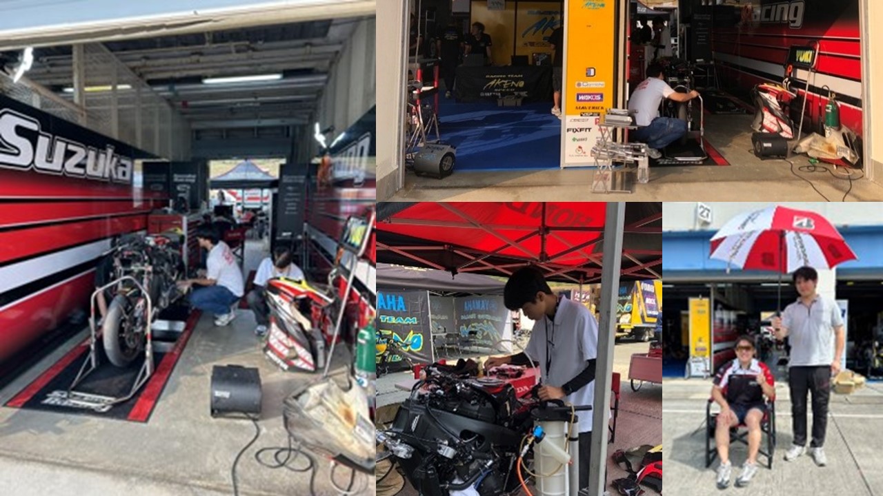 実際の全日本ロードレースの現場で働く、レースメカニックの技術を学び、車両整備スキルの向上を図ることができる貴重な機会を与えていただきました、Suzuka Racing の関係者の皆様、誠にありがとうございました。